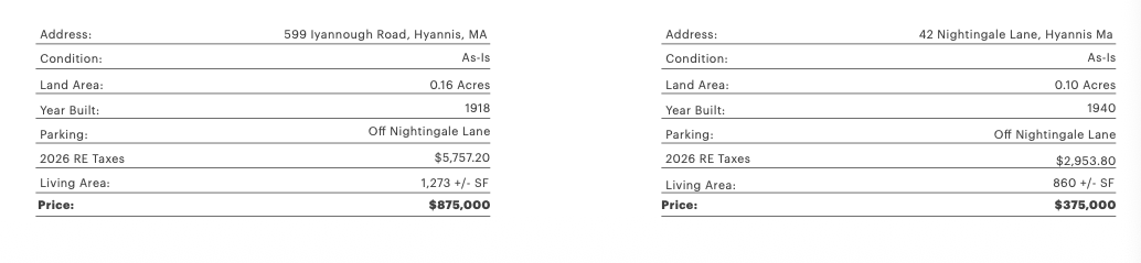 599 Iyannough Road & 42 Nightingale Lane | Hyannis Ma | Available Immediately